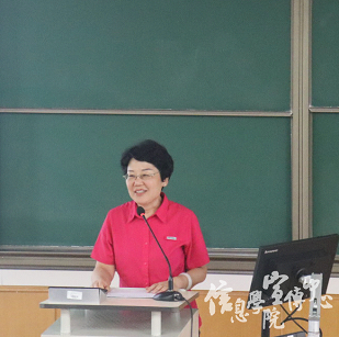 最后是校党委文君副书记致辞。文书记先是对2023级新生致以了亲切的问候,她表示,在“以信息化带动工业化”为特征的新时代,信息学院也迎来了前所未有的发展机遇,信院师生生逢其时,重任在肩。文书记指出,广大新生已经做出了正确的选择,来到了贸大,在此基础上更要学会成就自我,重点应做好三个方面:一是要做心中有天地、有信仰、敢担当的栋梁之才;二是要做眼中有星河、有理想、善创新的科技青年;三是要做脚下有力量、有韧劲、肯奋斗的实践先锋。最后,文书记祝愿新生们能从惠园起步,迈向更广阔的天地,并勉励大家要为全面建成社会主义现代化强国的第二个百年奋斗目标贡献出信院青年的智慧与力量。