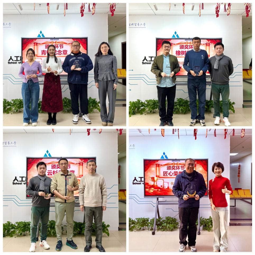 为表彰先进,鼓励广大教职工在教书育人、学术科研之路上不断取得新的进步,学院为新入职教职工颁发“青椒纪念章”、为新晋副教授颁发“橡树荣誉章”、为新晋教授颁发“云杉荣誉章”,为在岗满15年的教职工颁发“匠心荣誉章”。