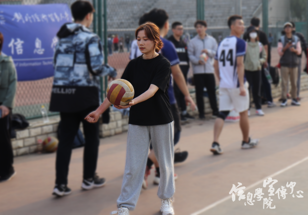 2021年4月22日16:45,信息学院女排对阵法学院的比赛正式拉开了帷幕。天气刚刚放晴,地面仍有部分积水,放晴后的太阳直射有些刺眼,可这并没有动摇信院女排拿下第一局比赛的信心。