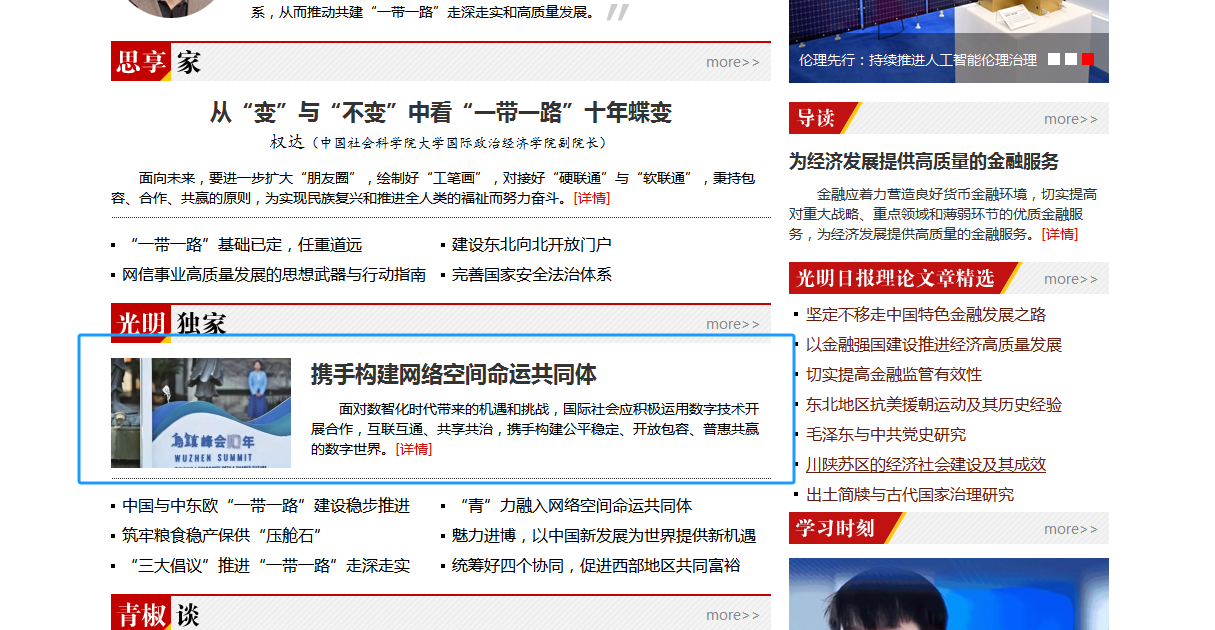 光明网理论频道的重点位置推荐
