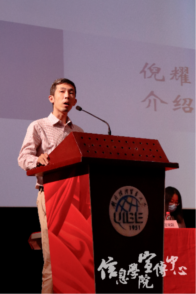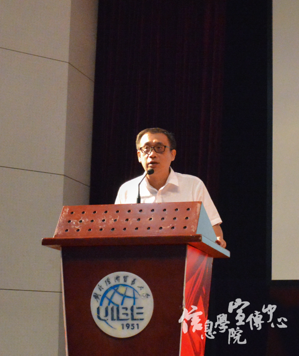 大会伊始,冷柏军院长进行致辞。冷院长首先表达了对新生们初来贸大,初到信院的欢迎。随后以“责任为先,能力为重,创新为魂”为中心,向新生讲述了信息学院过去历史,现阶段取得的成就,以及在未来将要开拓的新方向。冷院长提到,信息学院在贸大发展中具有重要地位,信息技术已成为未来经济社会发展中重要的一环,我们信院学子肩负重任,应当为学院学校乃至社会贡献自己的一份力量。