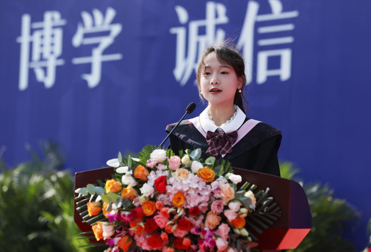 我是来自信息学院电子商务专业的本科毕业生严铖欣,非常荣幸能够在这里作为2023届本科毕业生代表发言。