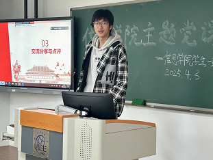 (信息学院学生一支部高明讯)为了响应中央号召,深入学习中央八项规定精神,强化支部党员的纪律意识,贯彻全面从严治党的重要原则,2025年4月3日下午信息学院学生一支部于求索B105教室举行“学八规正风气 强担当践初心”党日活动。本次党日活动旨在通过详细解读中央八项规定的核心要义,结合警示视频进行深刻剖析,进一步强调组织纪律的严肃性和重要性,教育支部全体学生党员要自觉遵守党的纪律,积极响应中央号召,将中央八项规定精神内化于心、外化于行。