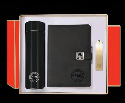 印有信息学院图标的水杯、笔记本及书签