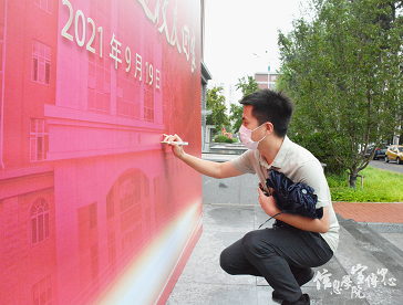 象征“猫大”的卡通立牌(由信息学院2021届校友王安琪同学设计)