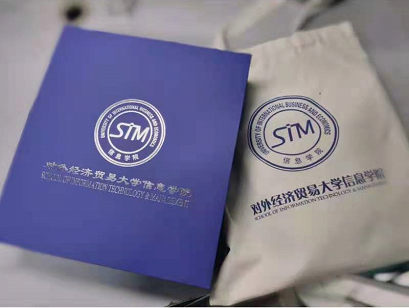 印有信息学院图标的卡片及帆布袋