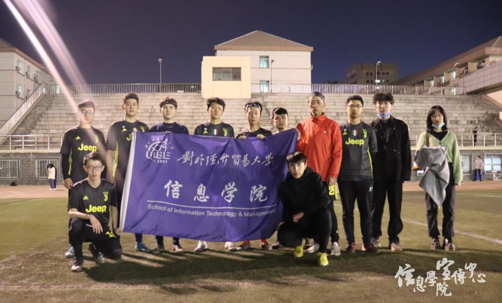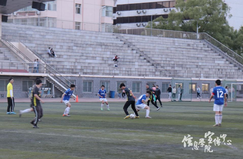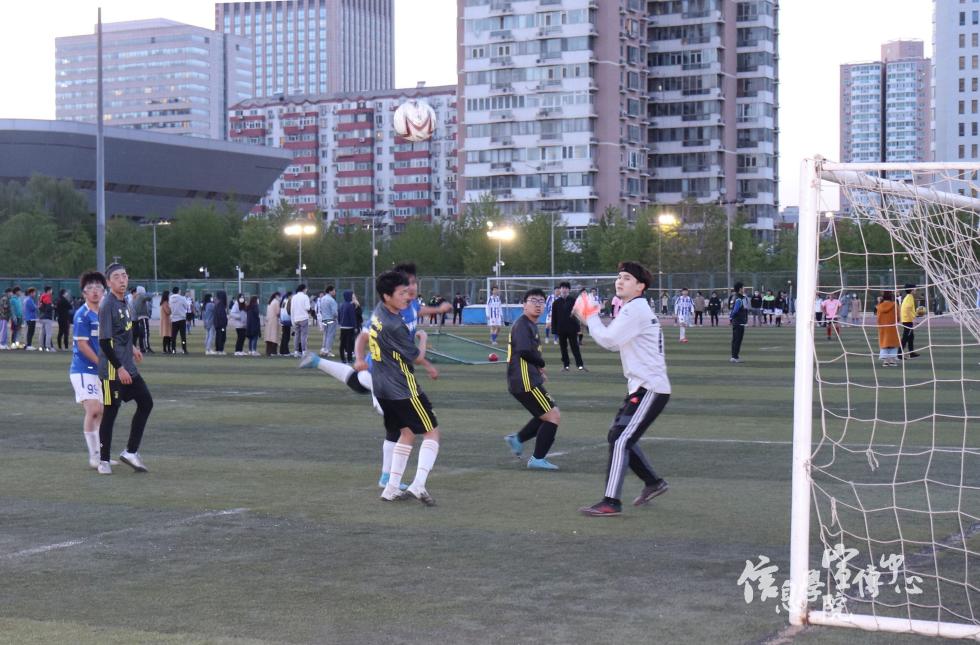2021年4月16日,下午6:30。春风习习,天气微凉。比赛前男足队员们进行了充分的热身准备,跃跃欲试。他们身着短衣短裤互相鼓励,商量战术,用对足球的热爱和昂扬的斗志给自己升温。信息学院对抗商学院的比赛一触即发。