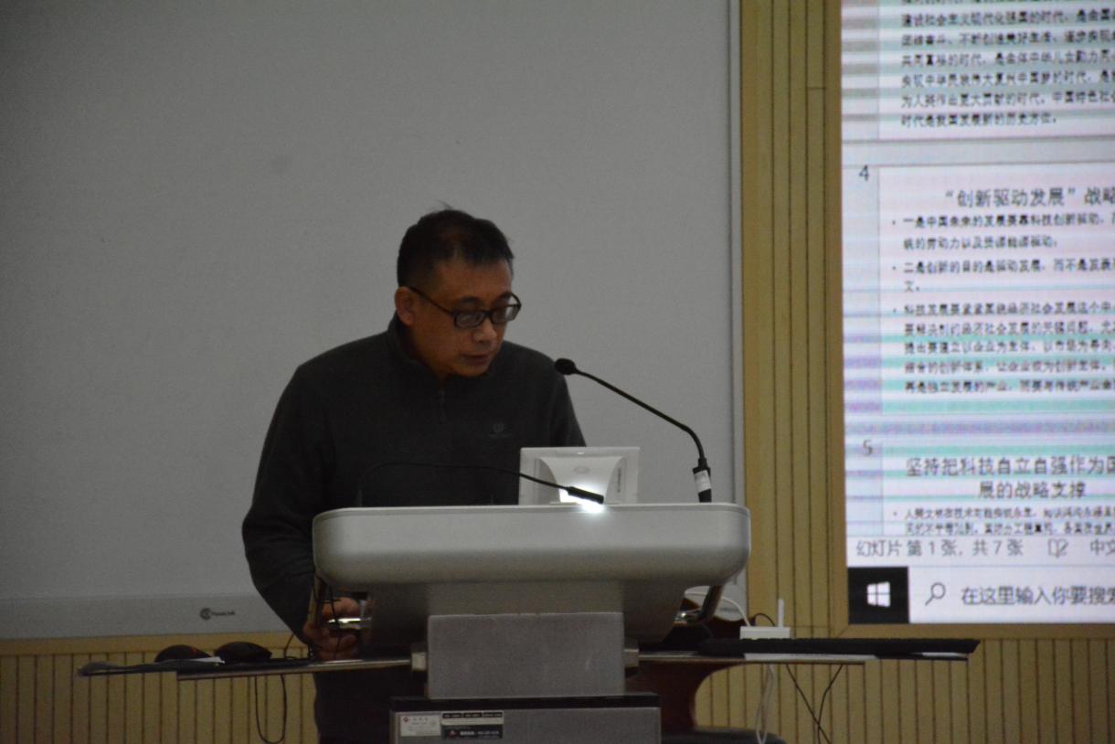 信息学院张旭路副书记结合十九届六中全会精神,从党中央对于新时代的认识、创新驱动发展战略、坚持把科技自立自强作为国家发展的战略支撑、我们应该怎么做四个方面分享学习体会,希望信息学院可以抓住有利发展时机,为学校“双一流”建设作出应有的贡献。