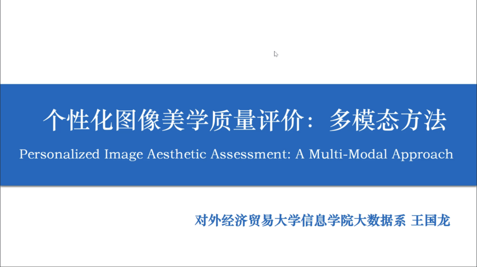 本次讲座采取线上的交流方式,由信息学院刘小月老师主持。刘小月老师先向参会者介绍了王国龙老师的研究经历。紧接着,王国龙老师做了基于多模态方法的个性化图像美学质量评价研究的学术分享。