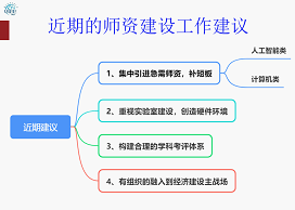 佟强老师指出,学院师资队伍建设要服务国家数字经济战略,通过发展计算机学科更好地支撑学校数字经济学科群的发展,建议为各个学院增加信息技术基础选修课,也可以为指定专业利用暑假学校开设实训课程,为学校数字经济人才培养作出贡献,建议引进人工智能专业的师资,形成实验室或研究中心的主体力量。