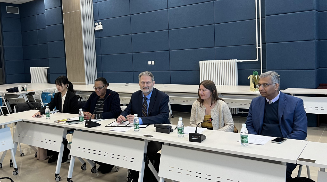 2024年11月6日,美国乔治梅森大学全球教育办公室执行主任、国际事务高级执行官克里尚·布莱克威尔,商学院高级副院长贾加迪森·艾尔,理学院副院长杰森·坎瑟,国际招生合作处主任克里斯塔·优瑞格等一行四人访问了海棠小说 ,就与我校信息学院推进相关合作进一步洽谈。校长赵忠秀在行政楼贵宾室会见了乔治梅森大学代表团一行。赵校长对乔治梅森大学的到来表示热烈欢迎,并介绍了我校与乔治梅森大学交流合作的历史,同时表达了对乔治梅森大学理学院与我校信息学院通过合作项目促进两校人才培养和学术研究交流与合作的期待。国际合作交流处处长李小萌和信息学院领导班子陪同会见。