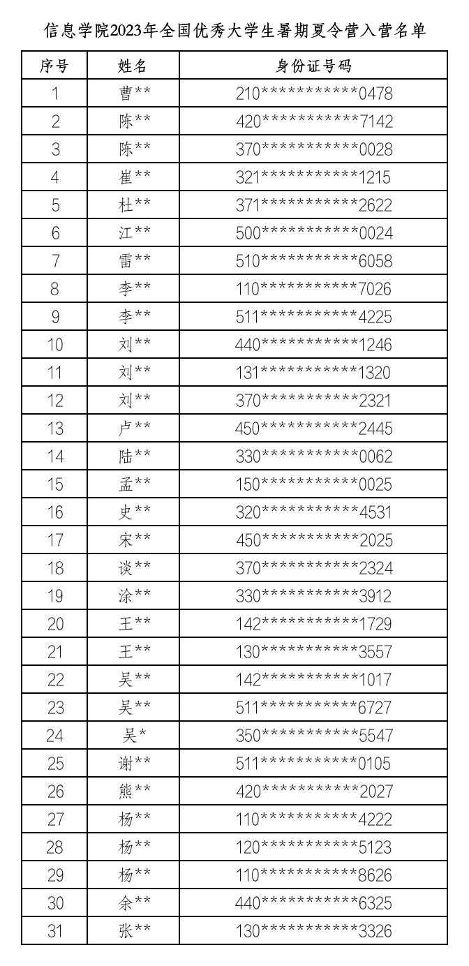 信息学院2023年全国优秀大学生暑期夏令营入营名单公示