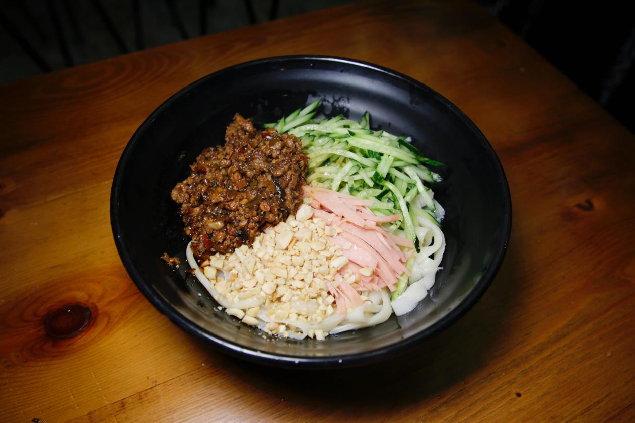 暑热难耐没有胃口?汇美时代食堂一碗清爽的刀削面帮你解决难题!削面师傅如杂技一般的削面手法为面条带来了劲道的口感,配上浓郁的肉酱、爽脆的黄瓜,扎实的配菜,造就了一份夏日能量补给套餐。